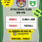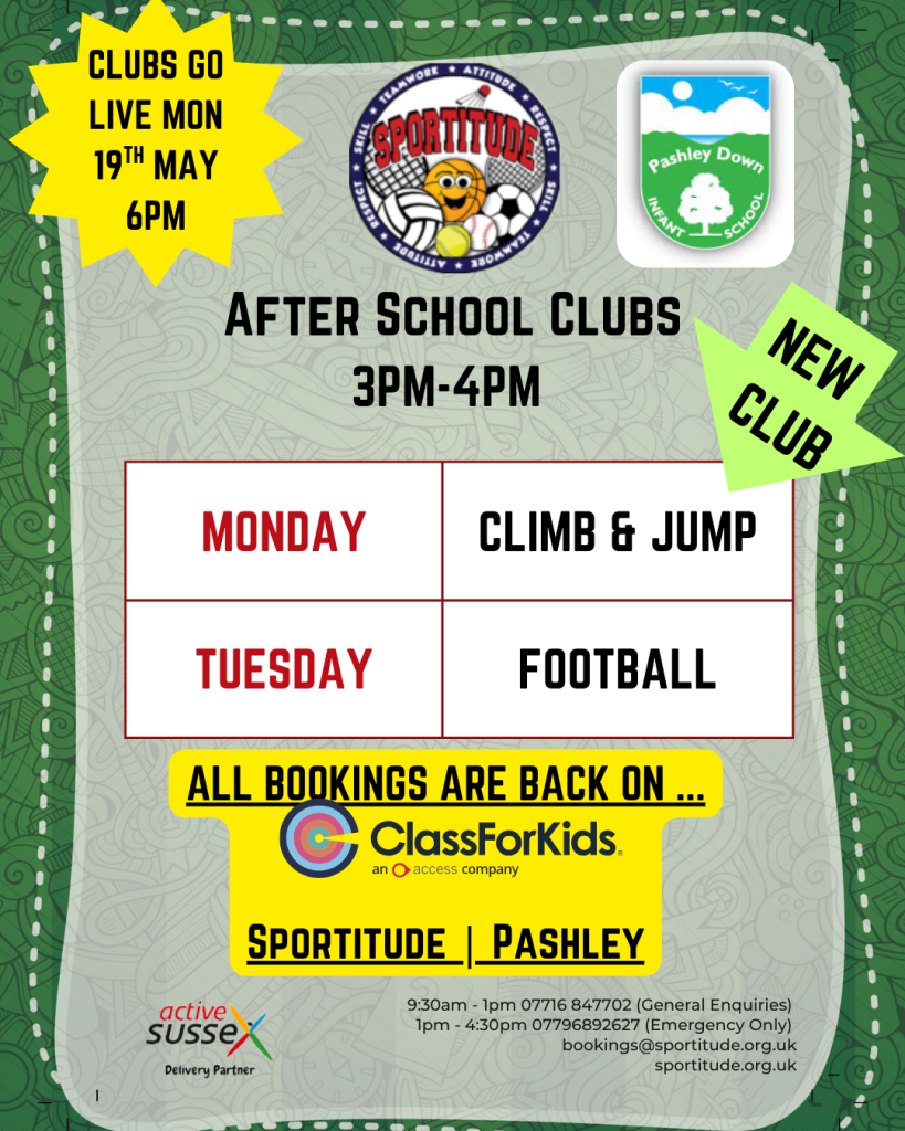 The clubs we offer are gymnastics, karate, tennis, yoga, football and the great out-tours.