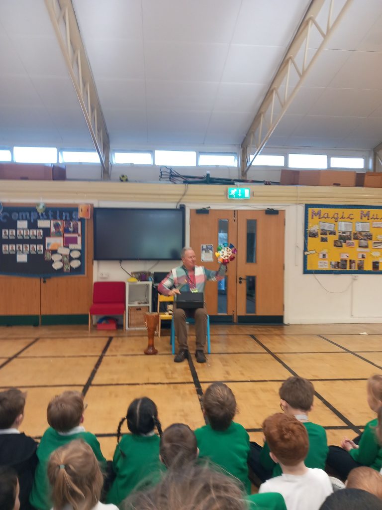 March 3, 2025 - 2:03 pmWe had a great visit from storyteller Kevin Graal. He told lots of different stories and all the children enjoyed joining in and some of the grown ups too! Thank you to the wonderful Friends of Pashley for sponsoring this!