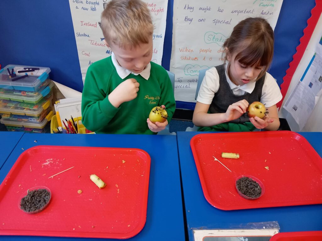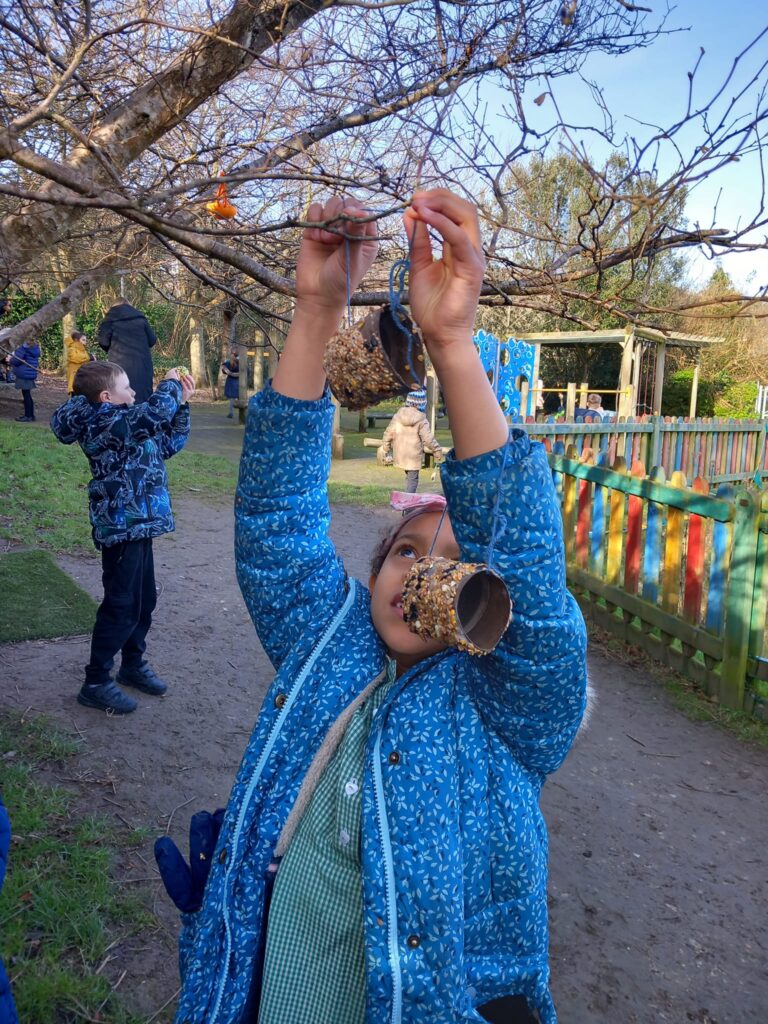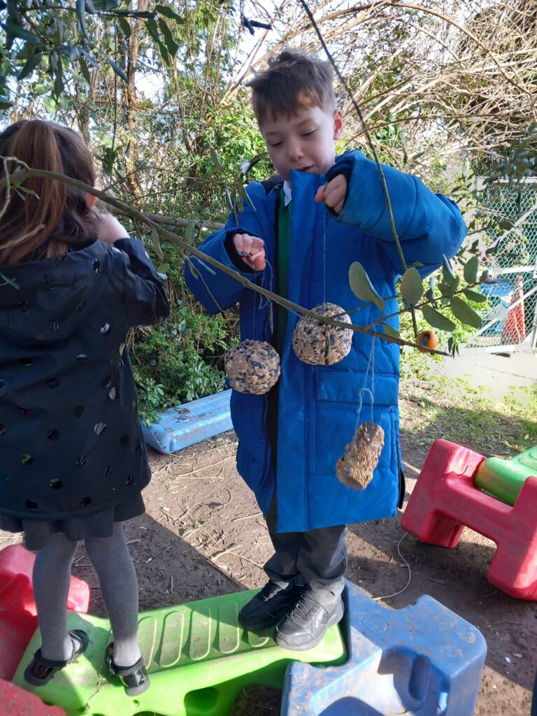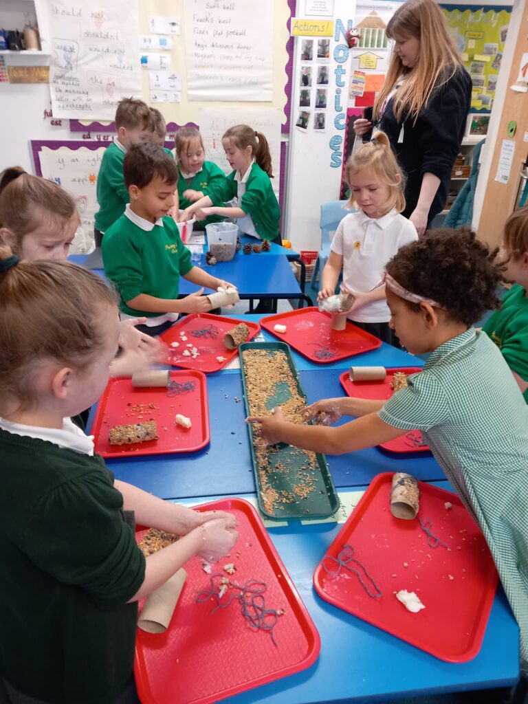February 1, 2024 - 10:26 amThe Robin class have had an amazing morning taking part in the Big Schools Birdwatch. They made lots of different type of bird feeders. The children thoroughly enjoyed getting messy. They hung their feeders up and after play we went on a walk around the school grounds to see what birds they could spot. We spotted robins which the children were thrilled about! It was such a wonderful morning.
